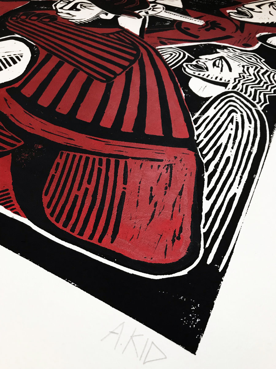 • 'Sugar Slave Babies' Woodblock print by artist A.kid